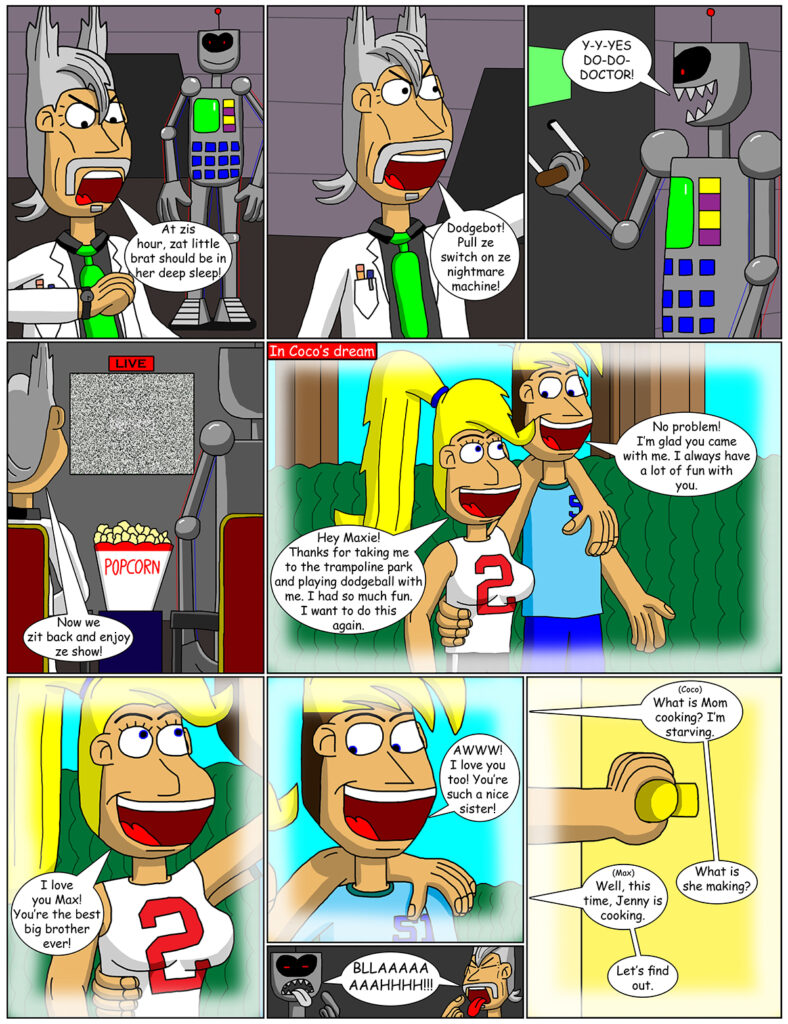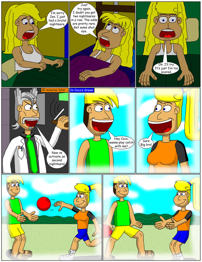 Dr. Von Sprockets creates a nightmare machine with a use of a microchip on Coco’s body. He test it on her and gives her numerous nightmares no matter what time of day she falls asleep.