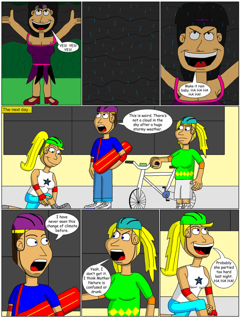 A spell-casting witch who lives in the wilderness uses her black spells and potions to control the weather. The Hardys would find out why the weather was unusual.