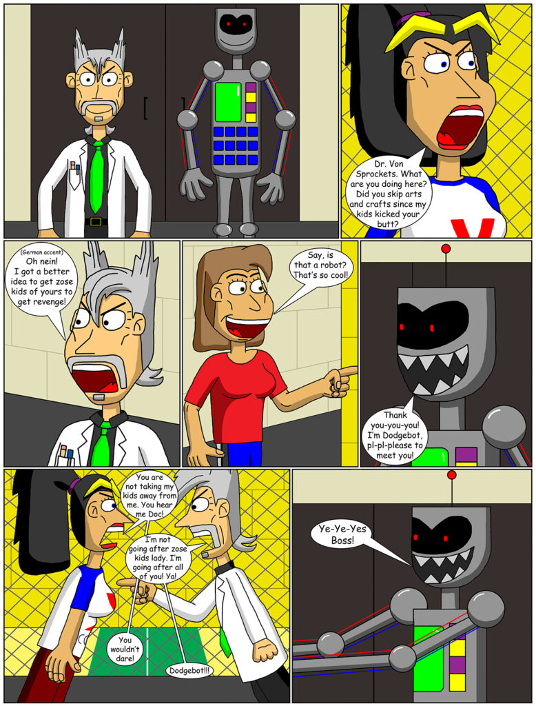 The mad scientist Dr. Von Sprockets and his robot sidekick Dodgebot capture the team’s mentors and use them as pawns by using mind control to take over the city and world.